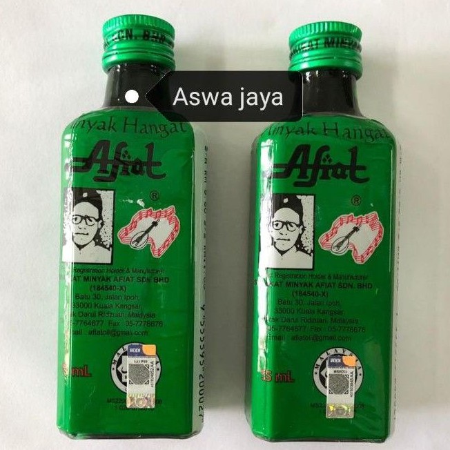 1 2 Showing 1 to 50 of 57. Minyak Hangat Afiat Bulat Afiat RM 450 lebih info Minyak Ibu Gamat Haji Hussin RM 300 lebih info Minyak Ibu Gamat Langkawi Yamni Industries. Minyak hangat afiat hijau RM1000.